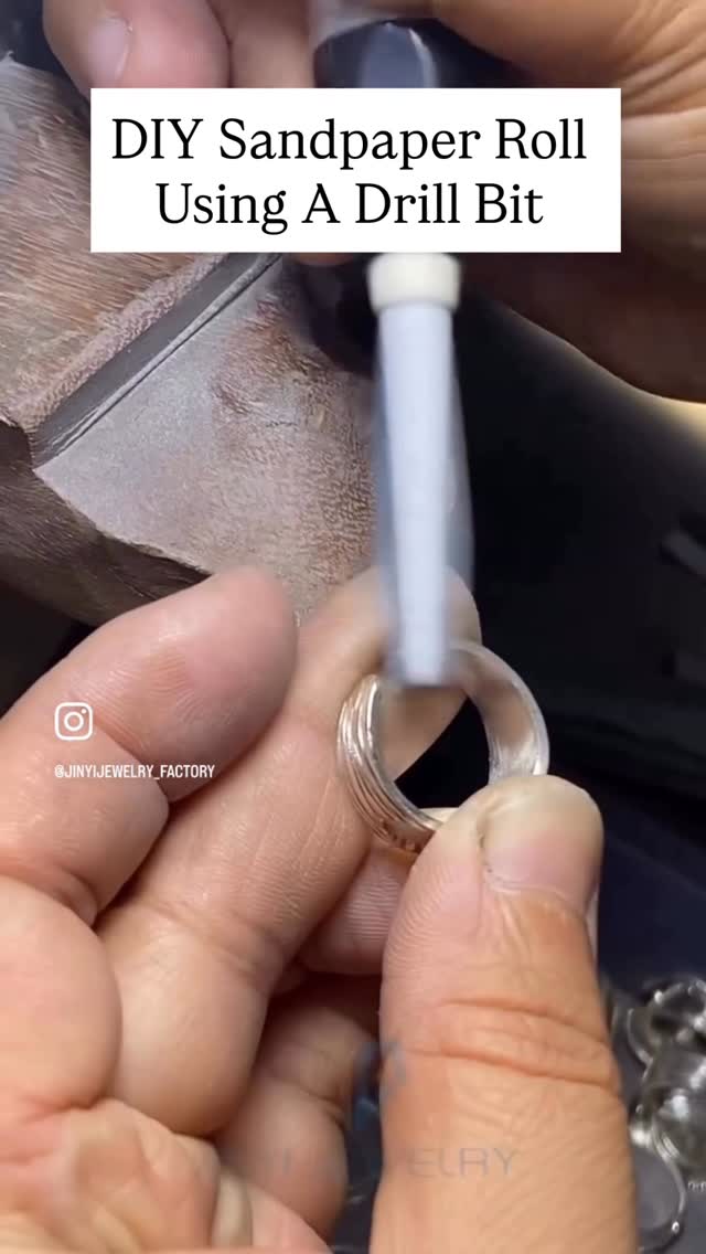 Here’s a clever DIY sander trick from @jinyijewelry_factory 👏✨ They start by rolling sandpaper into a cone, tucking the edges in with round pliers, then running a drill bit inside to rotate it. To keep the paper from flapping, they wrap a bit of... more